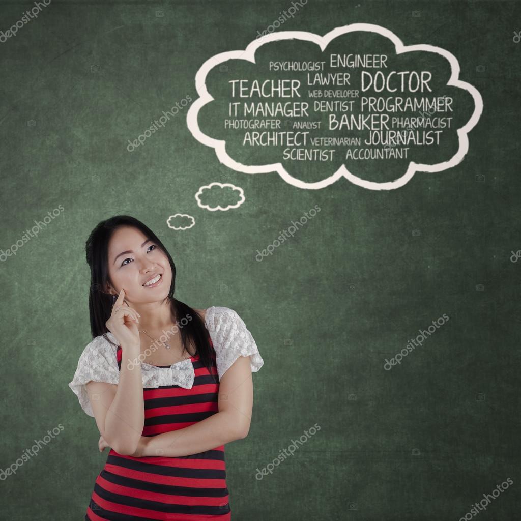 Chinese Student Thinking Her Dreams Stock Photo